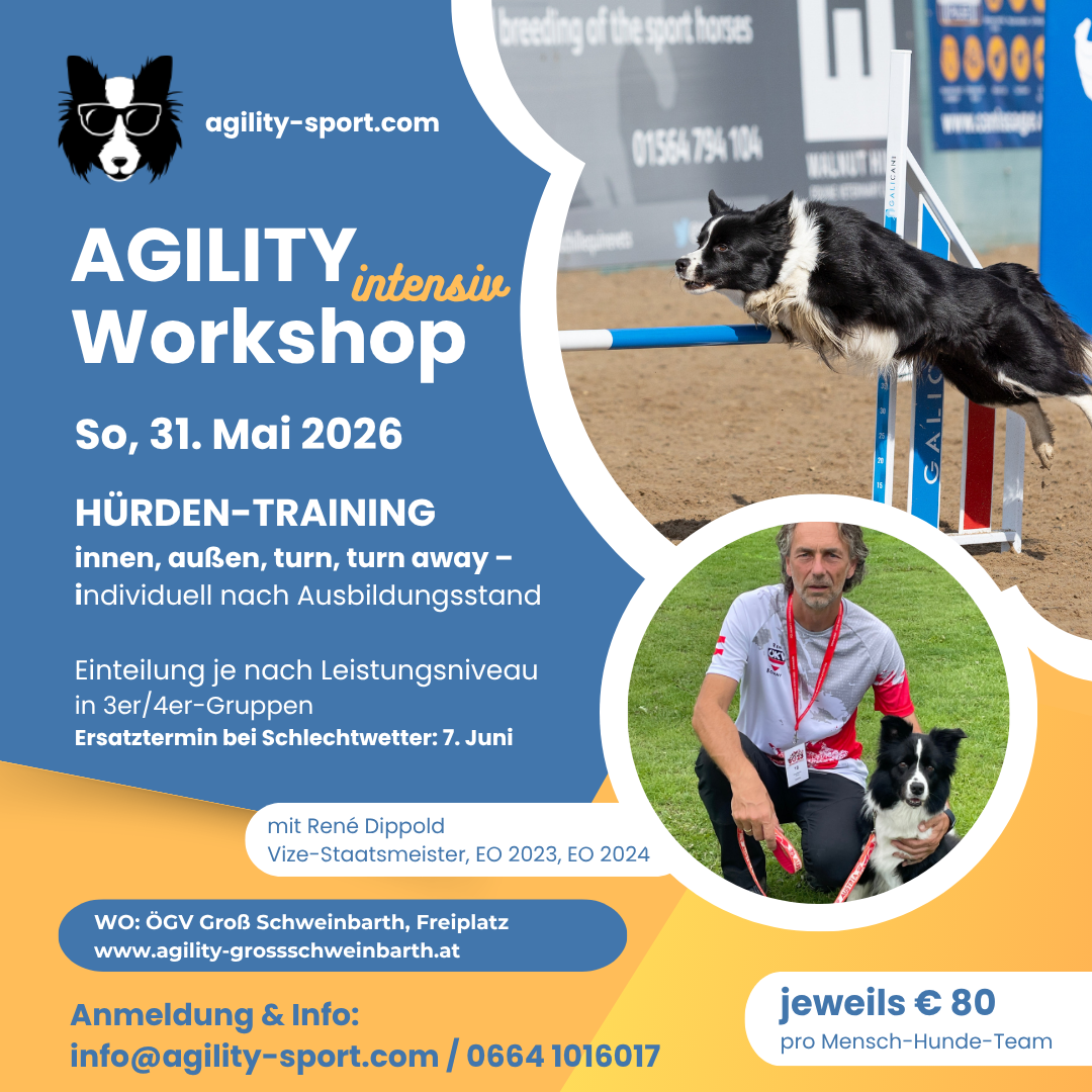 Termine sind in der Hundesporthalle Agility Funny Bones in Stockerau oder bei DOG-Motion in Königstetten und beim ÖGV Groß Schweinbarth möglich.